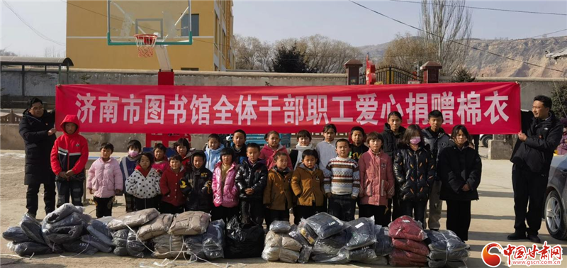 济南市图书馆为积石山县满陈家村小学捐献爱心棉衣